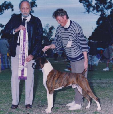 A BEST IN SHOW All Breeds winner, he was BEST IN SHOW at the Boxer Club of South Australia Show in 1977 at 10 months of age under Specialist Judge, the late Joey Royle, Onstage Boxers UK.